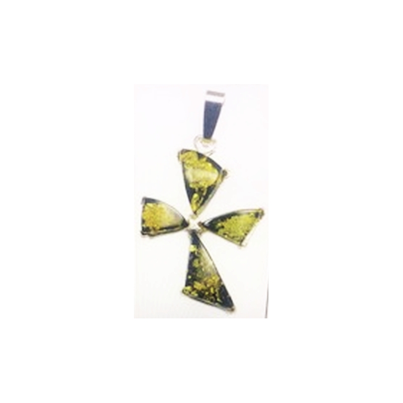 Srebrny krzyż z bursztynem