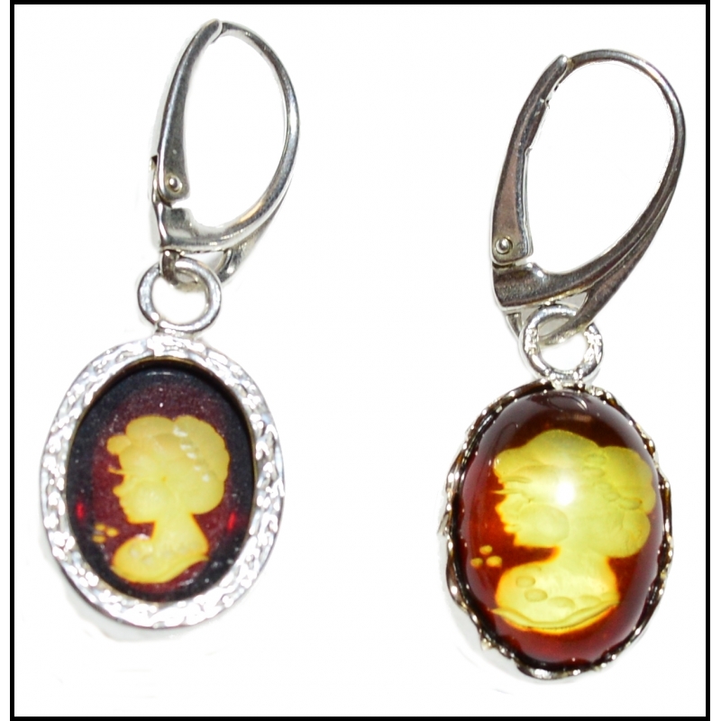 KAMEA BURSZTYNOWA KOLCZYKI W SREBRZE KOD:KKOL1216